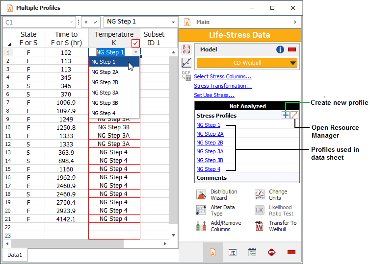 Note: If you are an Accelerated Life Testing Standard user who needs to use time-dependent stress profiles in your analysis, please contact ReliaSoft for information about upgrading to Accelerated Life Testing PRO.
