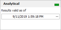- The Analytical area displays the status and results of the analysis. If the light is green, as shown below, then the diagram has been analyzed. If the light is red, then the diagram has not been analyzed. An analyzed diagram will remain in the analyzed state unless a change is made to the structure of the diagram (e.g., a block is added or changed, a connector is removed, etc.).
