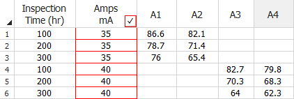 - For Accelerated Life Testing nondestructive data sheets, this allows you to add or remove columns for stress levels and, when using the Inspection View, add or remove subset ID columns.