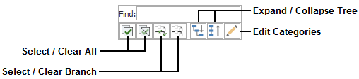When there are many categories, the tools at the top of the panel can help you find and select the one(s) you need.