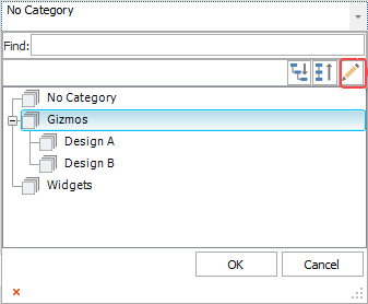 Alternatively, you can click inside any Category drop-down list (e.g., in a properties window, filter, etc.) and click the Edit Categories icon.