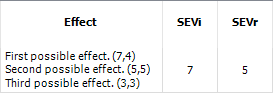When this effect is displayed in a hierarchy or worksheet, all of the descriptions will be combined into a single cell. The individual severity ratings will be shown in parentheses and the highest rating will always be used for the purpose of RPN calculations.