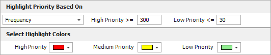 If you select Severity after MSR, Frequency or Monitoring, you can specify the High Priority >= and Low Priority <= thresholds and Select Highlight Colors.
