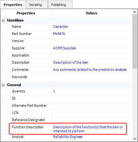 Any item properties in Lambda Predict that have an equivalent field in XFMEA/RCM++ analyses (such as Part Number, Supplier, Item Description, etc.) will be imported.