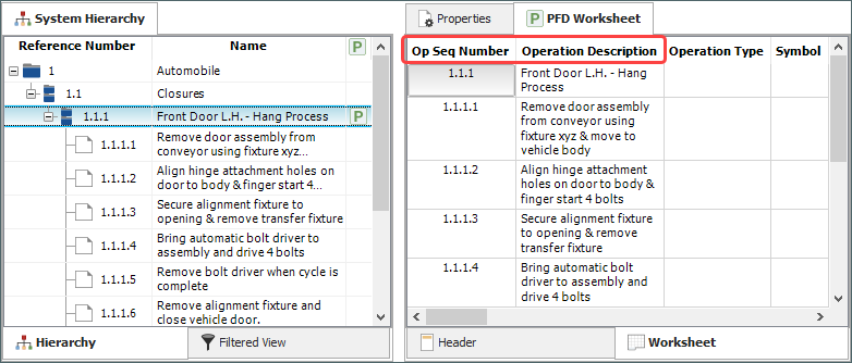 New system hierarchy items will be appended to the bottom of the PFD worksheet, while any modifications to the reference numbers and descriptions will be reflected in the existing records.