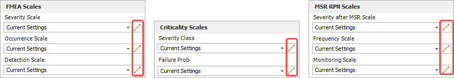 Severity after MSR, frequency and monitoring scales are used in Supplemental FMEA for Monitoring and System Response (FMEA-MSR). This functionality is available starting in Version 2023.