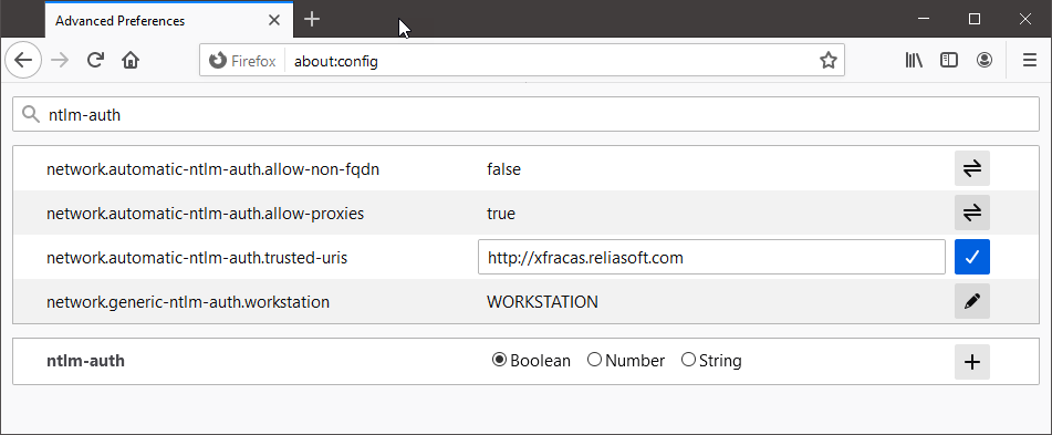 - Double-click network.automatic-ntlm-auth.trusted-uris (you can also click the Edit icon for this field).