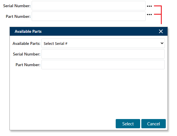 Tip: Starting in Version 2023, you can use the Tab key to move from a Part Number or Serial Number field to its associated Find icon. This has the same effect as clicking the icon.